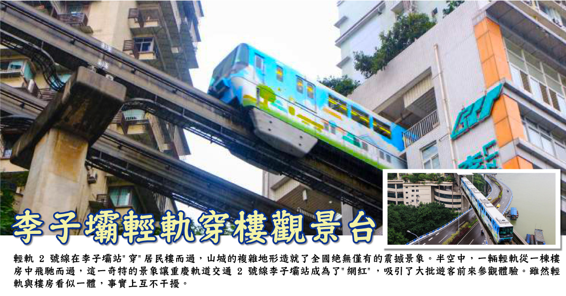 【李子壩輕軌穿樓觀景台】李子壩輕軌站穿樓被網友稱為神一樣的交通。在重慶輕軌 2 號線的李子壩站穿越房屋,每天都會上演輕軌穿樓越壑,空中飛馳而過的神奇一幕。現已經成了網紅景點,每天都有很多人拍輕軌穿過樓房的一瞬間。
