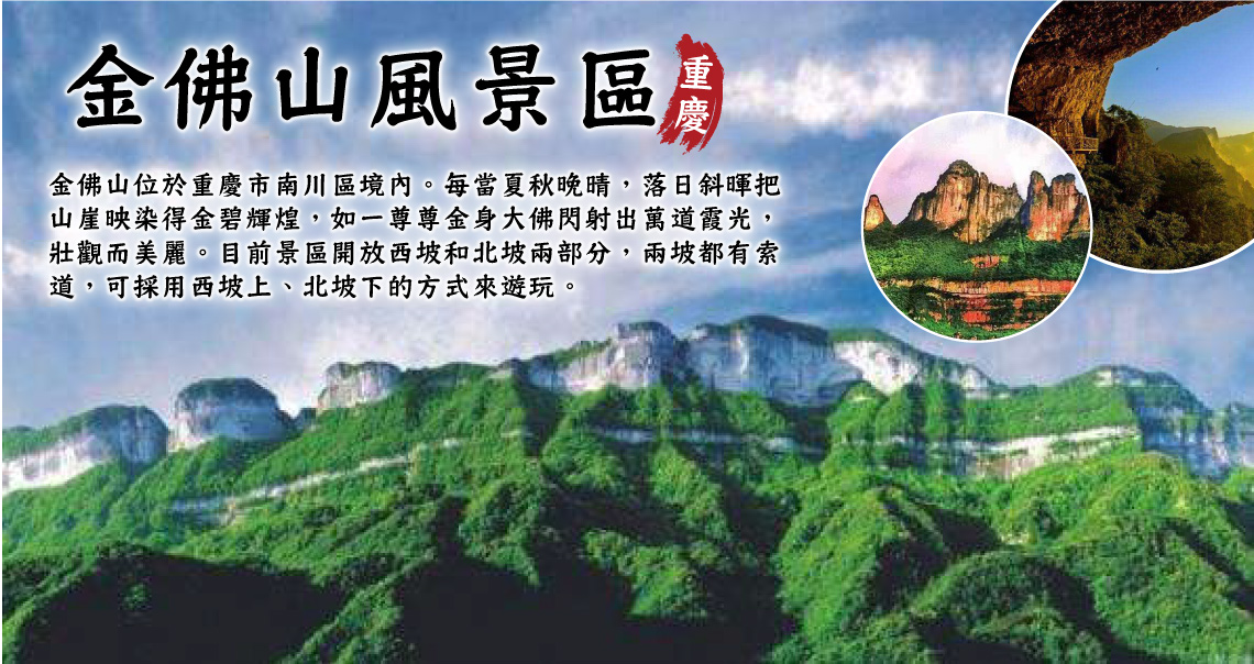【金佛山(含山下纜車+換乘車)】金佛山又名金山,古稱九遞山,世界自然遺產、國家 5A 級旅遊景區、國家重點風景名勝區、國家森林公園、國家自然保護區、國家自然遺產、中國最具影響力旅遊景區、中國最具價值文化(遺產)旅遊目的地、全國文明旅遊景區、全國科普教育基地,與“峨眉山、青城山、縉雲山”榮列巴蜀四大名山。在夏秋晚晴的時候,落日斜暉把層層山崖映染得金壁輝煌,如一尊尊金身大佛閃射出萬道霞光,異常壯觀而美麗,「金佛山」也因此而得名。