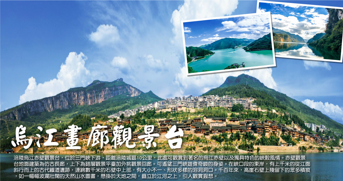 【烏江畫廊】是重慶市市級風景名勝區,位於酉陽土家族苗族自治縣西陲,為重慶市與貴州省的界河。距貴州沿河縣城 9 公里,距酉陽縣城 57 公里。是一處集自然山水、歷史古鎮、民俗風情於一體的高品位的風景名勝區。千里烏江最精華的“烏江百里畫廊”。烏江發源於貴州省威甯縣,自沿河進入酉陽萬木、龔灘,至涪陵匯入長江,全長 1070 公里,烏江酉陽段約 60 公里,是千里烏江最精華的地段,山似斧劈、水如碧玉、虯枝盤旋、水鳥嬉翔。