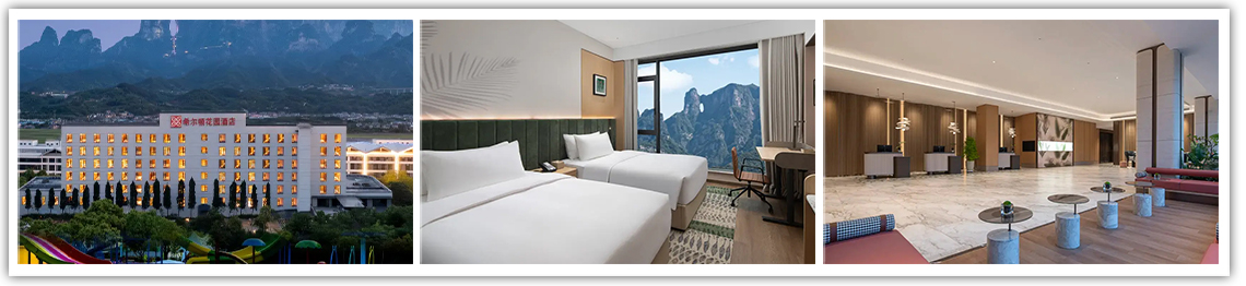 飯店是希爾頓大中華區全服型豪華度假飯店,位於雄奇壯麗的“湘西神山”天門山腳下。入住飯店可遠眺雲端之巔有天門吐霧奇觀的天門洞,感受“一步一重天、百步上雲端”的奇幻仙境。 飯店佔地面積4.3 萬平方米,擁有多間“花園4.0 版”各類客房,飯店秉承“明快熱誠”的花園精神,給賓客帶來舒心愉悅、縱情山水的度假體驗。飯店周邊交通便利,與荷花機場近在咫尺,優的地理位置,讓您可以隨時體驗休閒與度假,是您下榻的理想之選。
