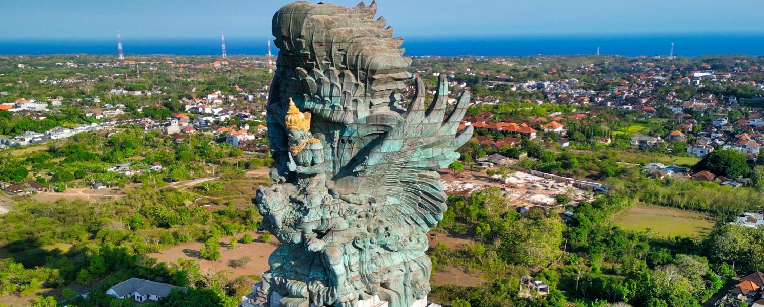 神鷹廣場是峇里島南部最知名地標,廣場最耀眼的是比紐約自由女神還要高的巨型雕像,高120公尺的塑像描繪出印度教主神毗濕奴神(Vishnu)與牠的坐騎金翅鳥嘉魯達(Garuda)。