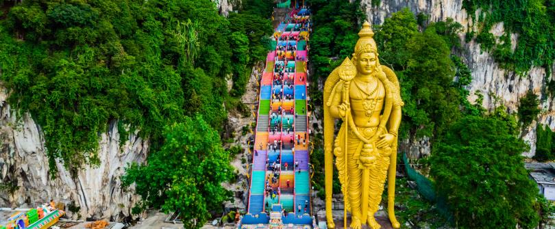 洞深十哩的巨大鐘乳石岩洞,其一直是吉隆坡郊區最吸引遊客的觀光點。登上黑風洞,得先攀登272層階梯,洞內有印度神殿,是大寶森節活動的重鎮,還有一個高達100公尺的寺廟透天洞,偶有陽光斜線而入,莊嚴氣氛,令您目瞪口呆。