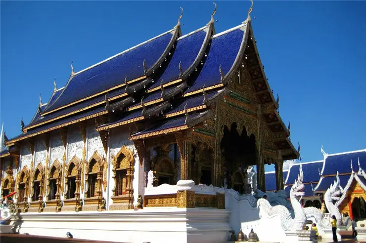 在西元1894年(泰曆2437年)便已建造落成,是當地居民的信仰中心。寺廟結合蘭納風格藝術建築,一改宗教嚴肅沉悶的形象,藍色的屋頂具有一種莫名的安祥感,如果是好天氣藍天白雲時,屋頂與藍天相互輝映,更加壯觀!