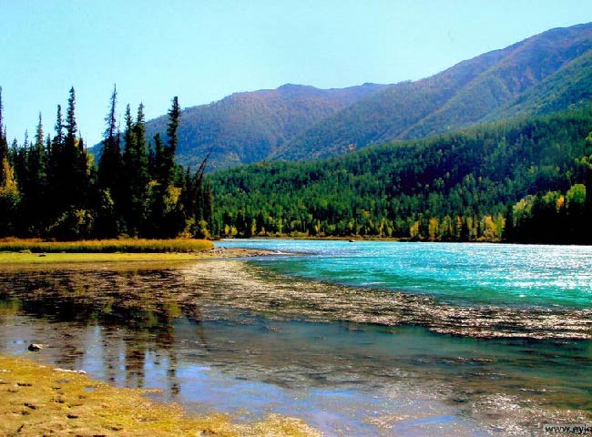 早餐後續穿越蜿蜒山路,進入可哥蘇裏景區。【可哥托海】每年夏秋季節,成千上萬的野鴨、紅雁、白天鵝等雲集在此,繁衍生息。山嵐縹緲,村莊、樹影依稀可見,如同一幅淡淡的水墨畫,讓人癡迷留戀,沙鷗翔集,魚遊淺底,風吹草低見牛羊的草原澤國美景,讓廣大攝影愛好者駐足。遊覽【野鴨湖】湖水澄清碧藍,湖中有大小浮島 20 多個,一叢叢蘆葦,開滿了蘆花,在風中輕搖低吟,湖面上的蘆葦叢隨風漂遊,景色隨蘆葦的變動而變化,尤如白洋澱的葦蕩迷宮,風一場景一場。【額爾濟斯峽谷風景區】從可哥托海鎮溯額河而上,繼續前行,便進入開闊的景區廣場,四周群山環抱,形成一個綠色聚寶盆。額河兩側亭亭玉立的白樺樹,鬱鬱蔥蔥的松樹,隨風舞動,林蔭樹下淺草平鋪,山花點綴。一座座突兀絕妙的花崗岩石峰夾峙,造型豐富多樣,號稱一百單八峰,沿額河兩岸依次排開,令人不由自主展開想像的翅膀。額河水圍起的小島上,白樺樹、松樹交相輝映,構成了俄羅斯莊園,木屋、小橋、潺潺流水,讓你不出國門就可以享受莫斯科郊外的夜晚。景區深處,一片開闊的草地上,兩大山石酷似一對烏龜,正沐浴愛的陽光裏,駐足者無不為之動容,稱呼“萬年情”。小夥子和姑娘們每經過這裏的時候,都會在這對巨龜面前許下愛的諾言,以見證 “情定萬年”。再回望山體上絕境獨立的高山雲松,竟讓最狹窄的石縫成為生命的突破口,令人感歎種子的力量和生命的神奇。【神鐘山】又稱阿米爾薩拉峰。行至峽穀 十八公里,一座如鐘似錐的花崗岩奇峰在額河南岸平地拔起,氣勢逼人,相對高度 351 米以上,可謂一石一世界。完整的巨石,逼真的神鐘山,倒扣在額爾齊斯河上,歎為觀止的時刻,山間回蕩著阿米爾和薩拉姑娘愛情的淒美傳說。神鐘山猶如巨神插足碧水綠蔭之間,頭枕藍天白雲,顯得巍峨神奇,變幻莫測。岩壁縫上生長著白樺樹、青松和西伯利亞雲杉,雨過天晴,彩虹劃天而過,景色十分壯觀。登上山頂,極目遠望,群峰巍峨,額河峽穀躍入眼簾,山腳下的額河水像翡翠一樣在巨石間穿梭,繞過鐘山腳,絕塵而去。每到秋季,神鐘山峽穀兩側的紅葉染紅了整個峽穀,秋意盎然,一派北國風光,猶如畫中游。午後驅車前往北屯市。